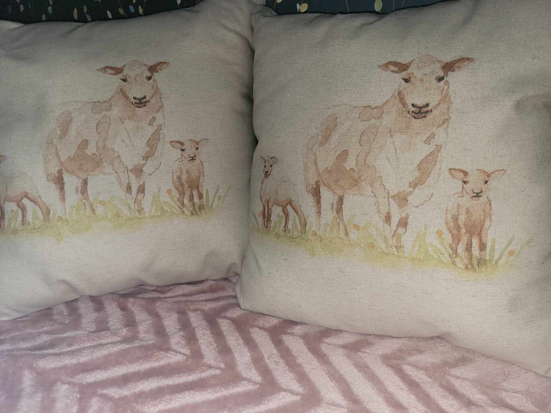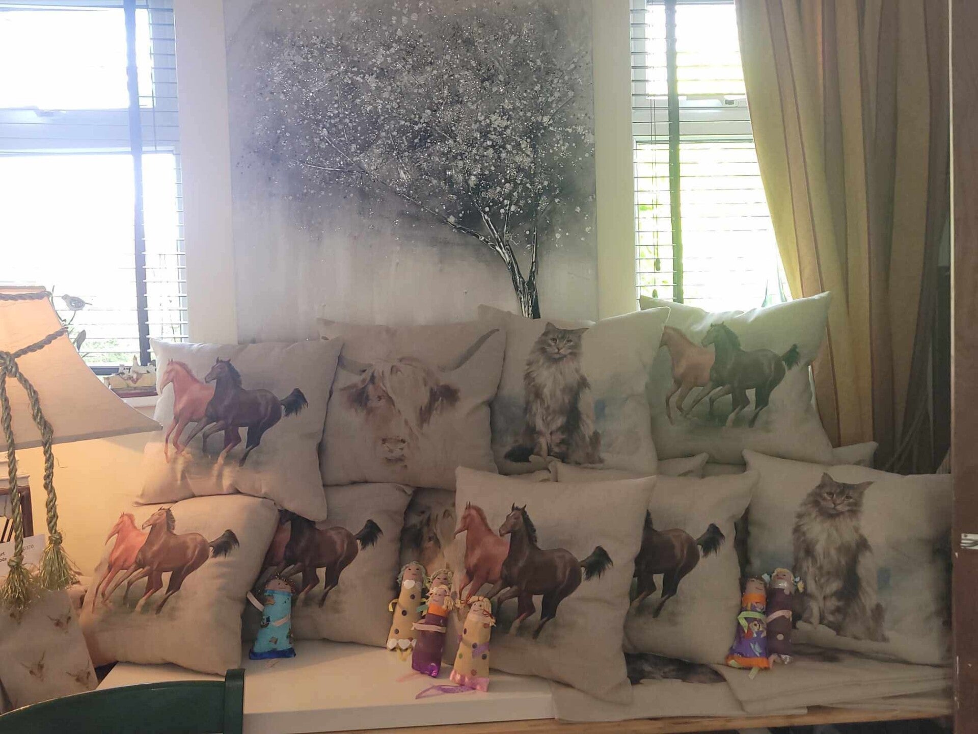 Hand made pillows with different animals on also little dolls